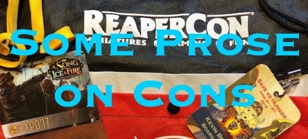 I think this is the thing that really keeps people coming back to conventions and shows. It is also the thing that doesn’t seem at all compelling to consider if you haven’t yet been to your first one. It is an almost magical feeling to be surrounded by people who share your enthusiasm for the miniature hobby. ReaperCon and AdeptiCon are probably the two places on earth where I don’t feel awkward wandering around wearing my painting visor. :-> And although a convention may not seem like the ideal activity for the more introverted among us, keep in mind that a lot of the other attendees are also introverts. And geeks and nerds. Chances are very high that if you’re a little awkward, or you need to take some time to yourself, or you have some mobility issues or other concerns, there are going to be a lot of people in the crowd who understand your situation.,