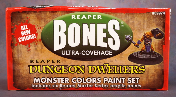 The Dungeon box is an interesting mix of colours, and includes two new metallic colours. I have really been liking the Bones HD metallic paints a lot. They’re my go-to paints when using metallics from the Reaper line now. (I do primarily use Reaper paints, but sometimes use the Vallejo Air line for metallics. Steel/silver primarily, the colour selection of their golds is kind of odd unfortunately.)